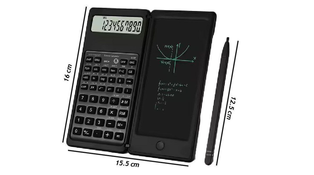 CARACTERÍSTICAS PRINCIPALES: ✅ Calculadora científica con funciones avanzadas para matemáticas. ✅ Incluye un bloc de notas LCD borrable integrado para apuntes y operaciones. ✅ Diseño plegable y compacto para fácil transporte. ESPECIFICACIONES TÉCNICAS: 🧮 Funciones: Trigonométricas, logarítmicas, estadísticas, etc. ✍️ Bloc: Pantalla de escritura sensible a la presión. 🔋 Alimentación: Batería recargable o tipo botón. BENEFICIOS: 🌟 Herramienta completa para estudiantes, ingenieros y contadores. 💖 Permite tomar notas rápidas sin desperdiciar papel.