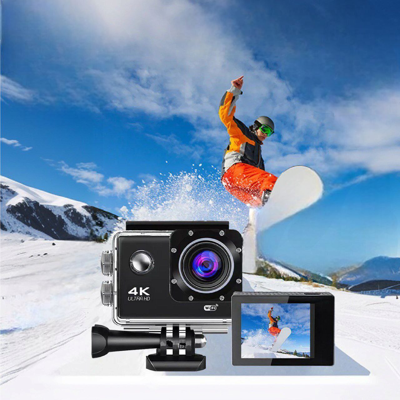 CARACTERÍSTICAS PRINCIPALES: ✅ Grabación de video en calidad 4K Ultra HD a 60 cuadros por segundo. ✅ Carcasa sumergible y resistente a golpes y caídas. ✅ Conectividad Wi-Fi para control y descarga de archivos a la app móvil. ESPECIFICACIONES TÉCNICAS: 🎥 Resolución: 4K 60FPS / 1080p 120FPS. 💧 Profundidad: Sumergible hasta 30 metros (con carcasa). 📸 Lente: Gran angular (wide angle). BENEFICIOS: 🌟 Captura tus aventuras extremas con una calidad de imagen nítida. 💖 Ideal para deportes acuáticos, viajes y actividades al aire libre.